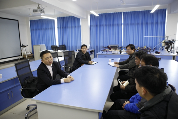 随后,邓建华来到电子信息与自动化学院,与广西高校无人机遥测重点实验室师生进行了深入交流。