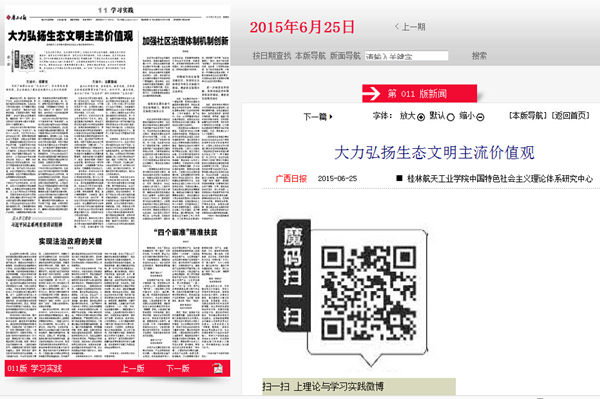 广西日报 2015-06-25 ■ 桂林航天工业学院中国特色社会主义理论体系研究中心