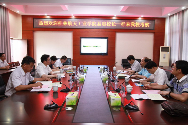 5月27日下午,在贺州学院西校区行政楼102会议室,该校校长吴郭泉就贺州学院的办学思路、学科建设、校企合作以及在转型发展过程中的有关做法和经验作了介绍。易忠希望两校今后能够进一步加强交流与合作,实现两校的共同进步。随后,与会人员围绕双方共同关注的问题进行了深入交流。会后,考察组参观了该校族群文化博物馆、广播电视模拟实验室、大学生创新创业基地。