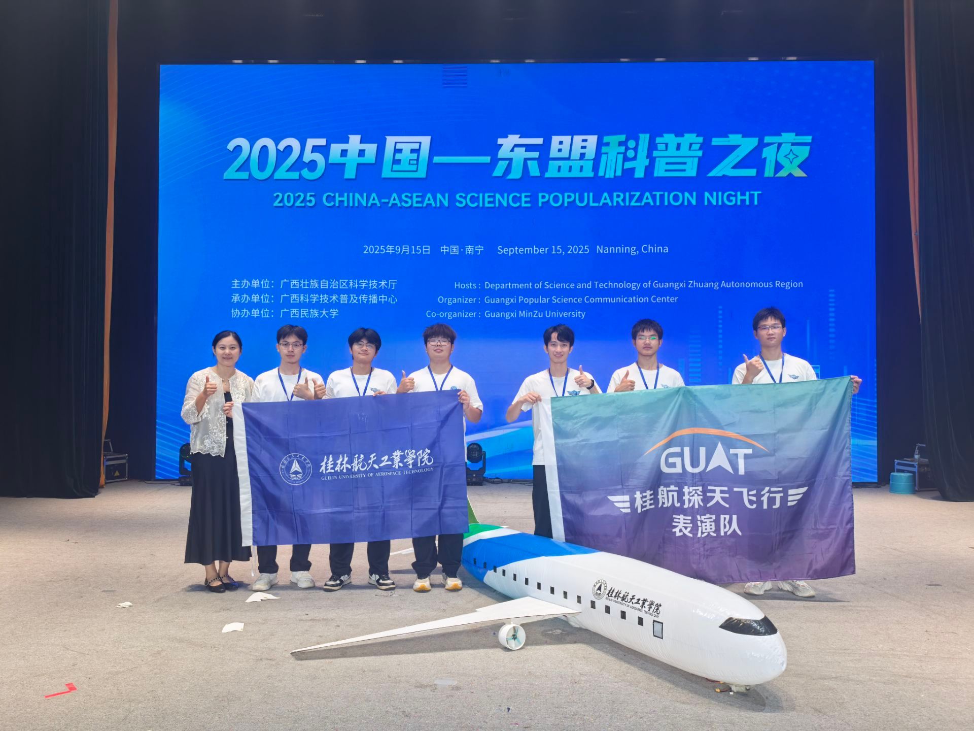 9月15日晚,由广西壮族自治区科学技术厅主办,广西科普传播中心承办的“中国—东盟科普之夜”活动成功举办,活动以“AI科普领航智联东盟”为主题。中国科技部、东盟国家驻邕领事馆、自治区相关部门代表、东盟杰出青年科学家及来自中国、泰国等东盟及“一带一路”共建国家的近500名嘉宾出席了活动。桂林航天工业学院桂航探天飞行表演队应邀出席并进行精彩展示。