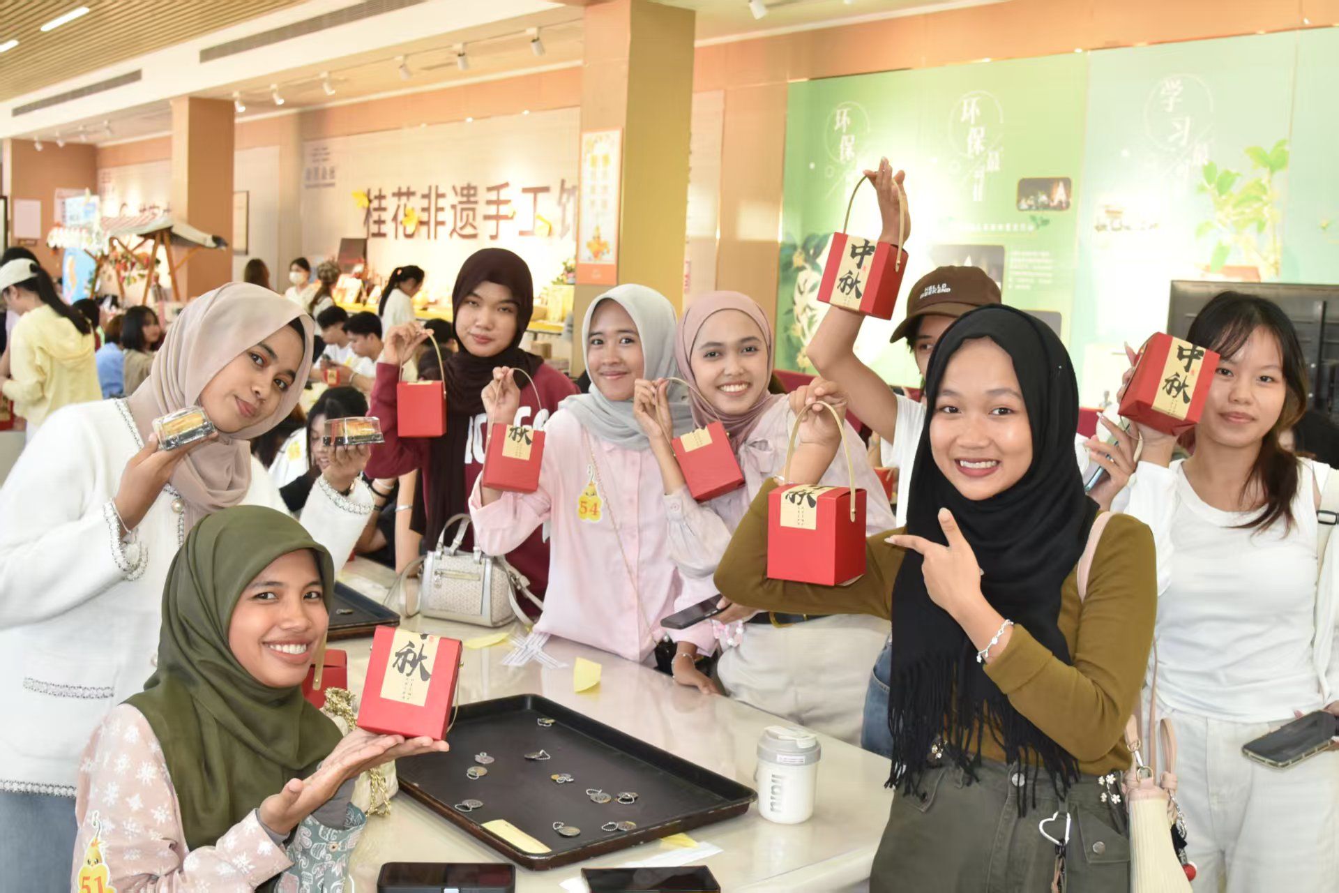 9月27日,我校国际教育学院组织2025年来华留学生新生前往桂花公社参加中秋文化体验活动,共同感受中华传统节日氛围,来自越南、泰国、印度尼西亚、老挝和柬埔寨等国的留学生们参加了此次活动。