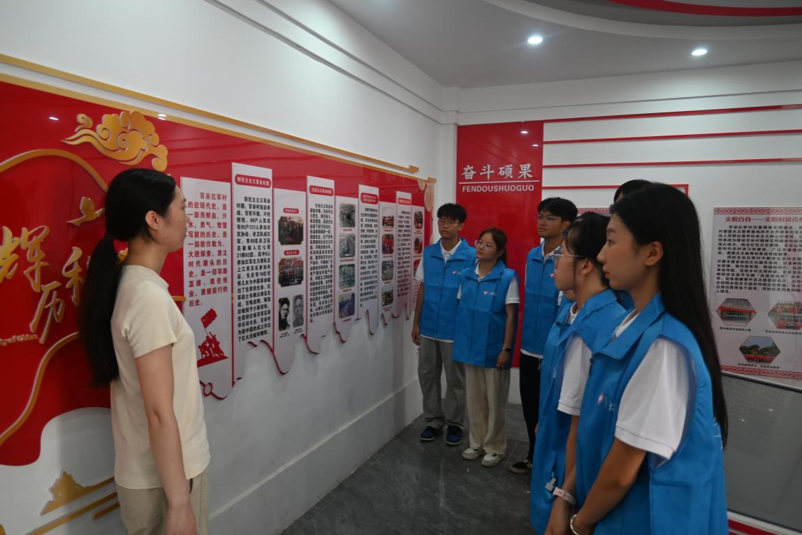 在广西百色市田东县百谷村——这片被誉为“红军村”的革命热土,服务队将“百色起义精神”与“两弹一星”精神有机衔接。队员们参观百谷红军村陈列馆,重温恩隆暴动历史,并走访93岁高龄的红军烈士亲属韦四妹老人,聆听革命家庭的坚守与牺牲。通过实地研学与口述访谈,青年学子在历史现场感悟信仰力量,寻找不同时代奋斗者的精神。