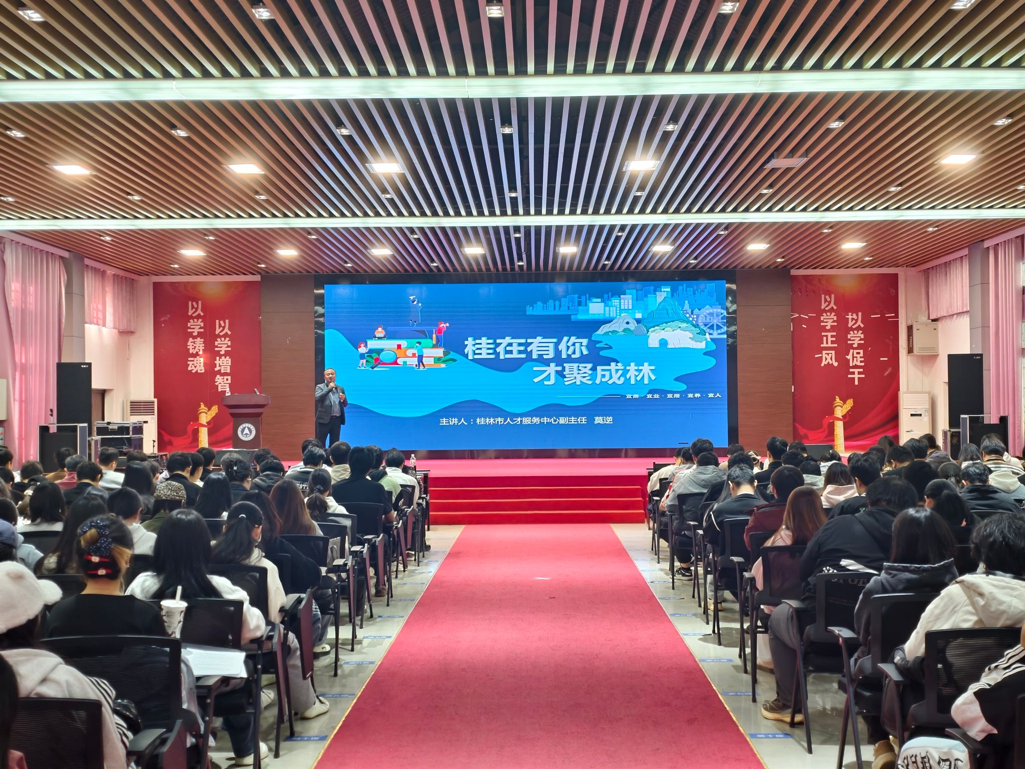 为深入贯彻广西高校毕业生留桂就业计划,引导桂航学子扎根广西、服务地方发展,11月27日,学生工作部(处)特邀桂林市人才服务中心副主任莫逆在北校区招聘大厅作留桂就业政策专题宣讲。本次活动通过第二课堂平台组织报名,共吸引300余名学生参加。