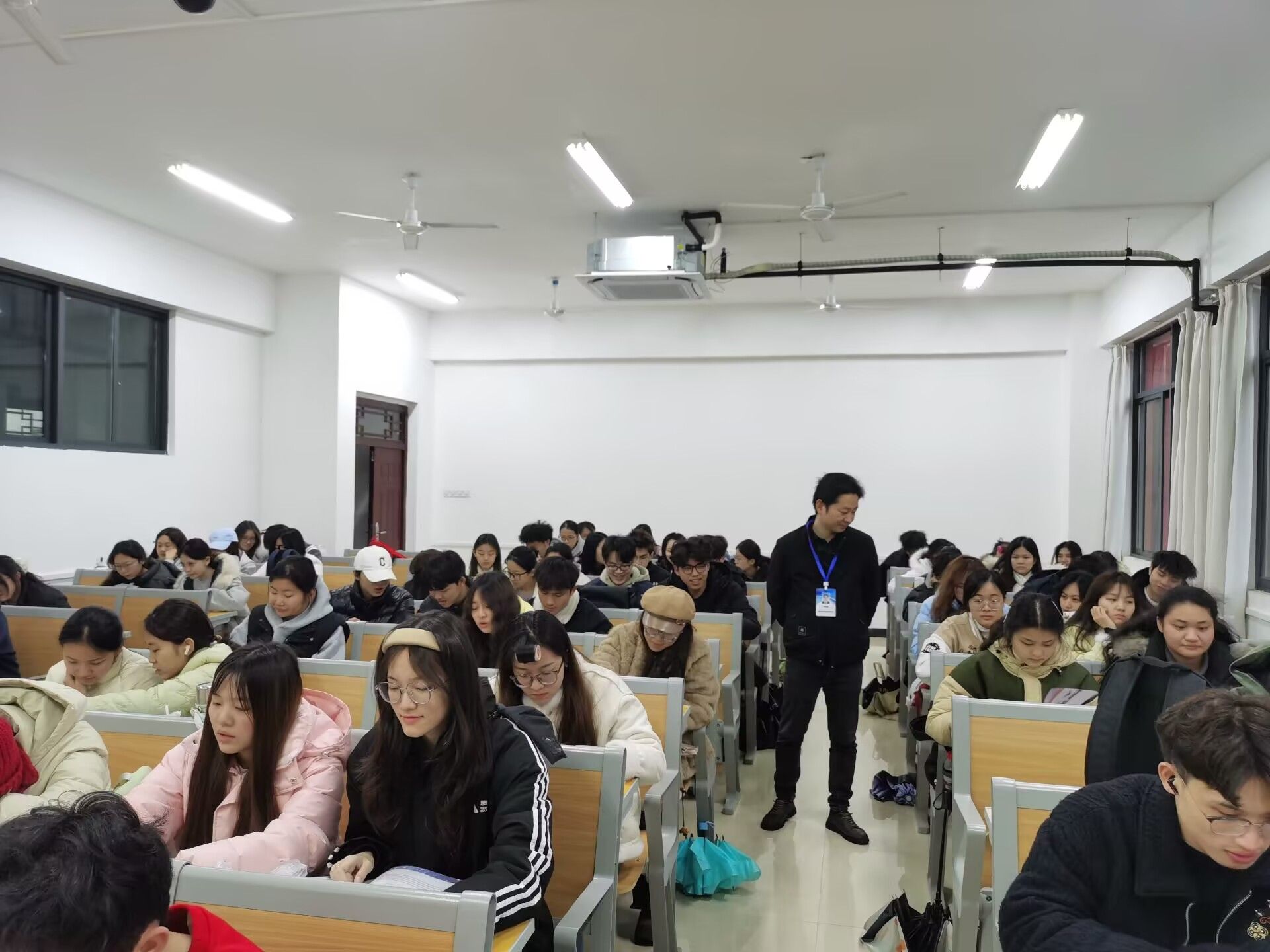 学院分管学生工作负责人与辅导员走进早自习现场,察看学生学习状态,鼓励学生珍惜时光、主动学习,同时强调优秀学风建设的重要性。各班级开展“开学第一课”主题班会,辅导员融合思想政治教育、心理调适、纪律要求等方面,通过各种形式排解学生压力,增强专业认同和班级凝聚力。会后,辅导员走访学生宿舍,开展安全排查,关注用电、消防和环境卫生,结合春季传染病防控,引导学生宿舍保持整洁,确保宿舍安全温馨。