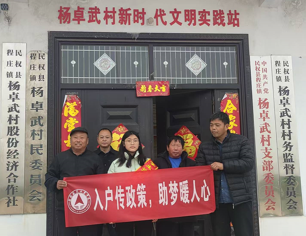 寒假期间,学院资助宣传大使王悦、庞岩松、许忠炫3位同学,怀揣责任与使命,分别奔赴河南省商丘市民权县程庄镇杨卓武村、河北省张家口市蔚县南杨庄乡东大云疃村、代王城镇张中堡村、李家碾村,以及广西壮族自治区钦州市灵山县那隆镇磨刀垌村等地,开展“入户传政策,助梦暖人心”主题宣讲活动。