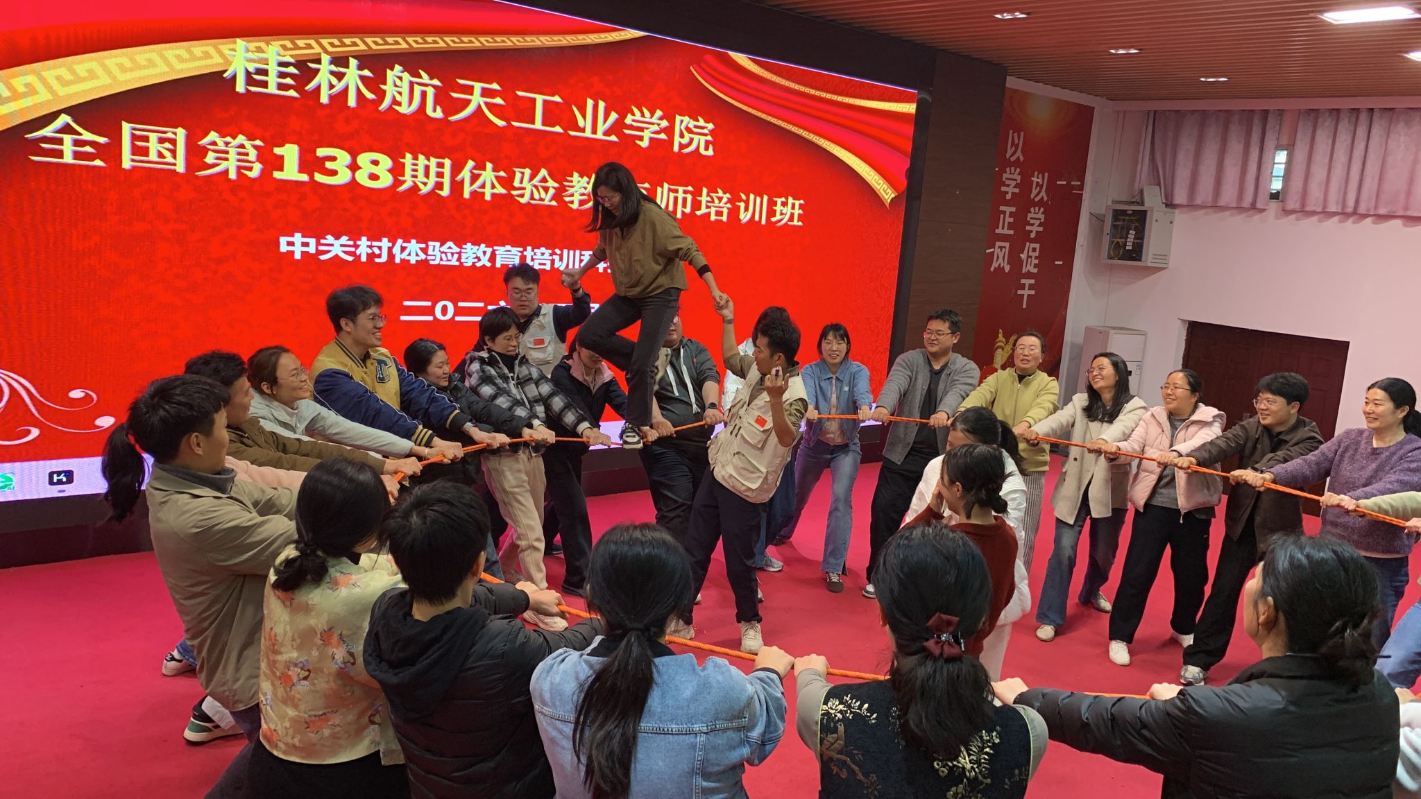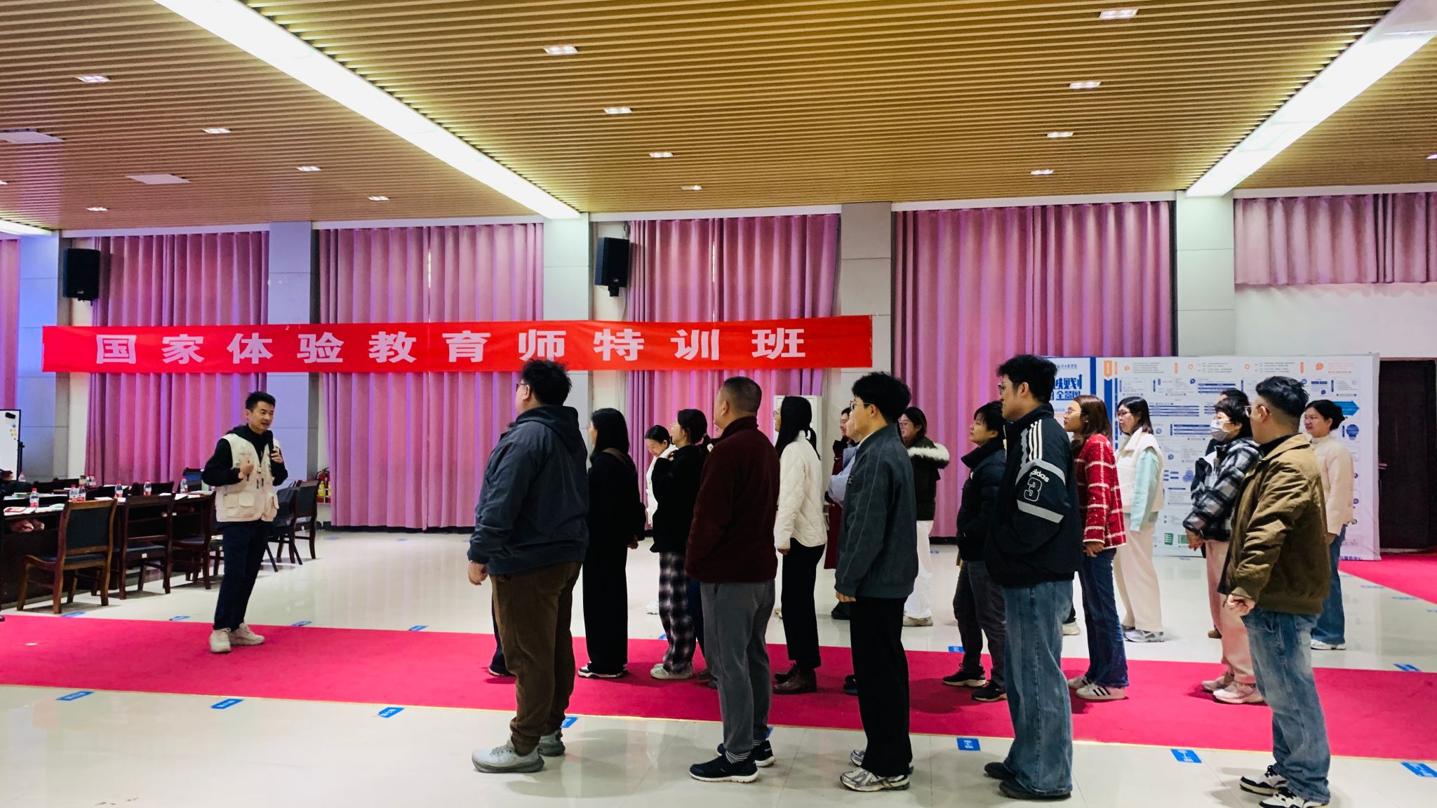 培训为期四天,特别邀请国内体验教育领域资深专家团队授课。课程采用理论研习与实操体验紧密结合的方式,系统且全面地讲授了体验教育的理论基础、组织引导技巧、安全规范与课程活动设计方法。培训过程中,全体参训人员学习热情饱满、参与积极性高涨,他们不仅在互动体验中深化理论认知,还在团队协作与模拟带领中锤炼实操技能,最终圆满完成了各项研修任务。