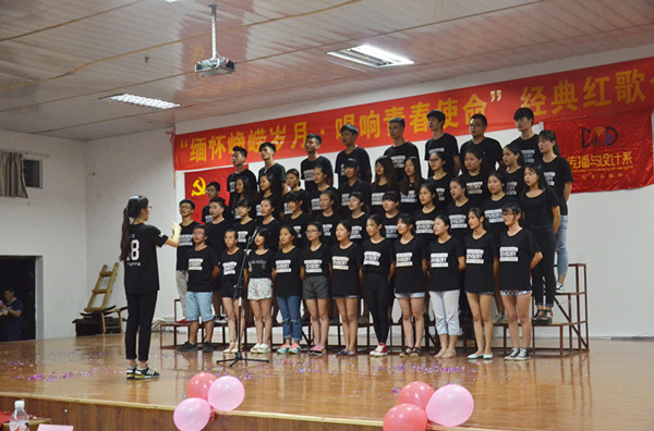 6月29日晚,外语系和传播与设计系在北校招聘大厅共同举办以“缅怀峥嵘岁月,唱响青春使命”为主题的红歌合唱比赛。外语系党总支副书记邱文杰、传播与设计系党总支副书记王学军、辅导员老师及学生近400人共同参加了此次比赛。