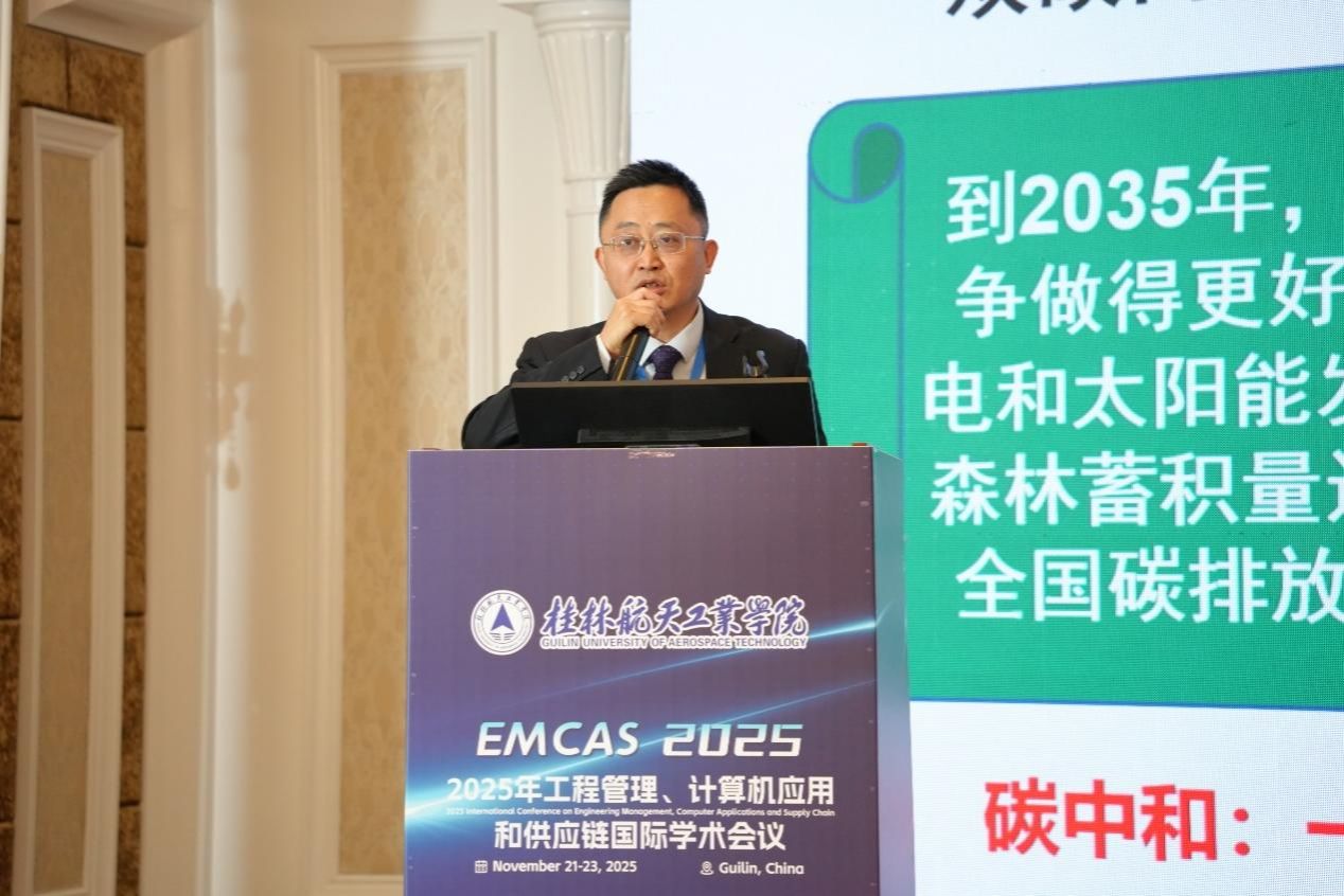 11月22日,由我校主办的“2025年工程管理、计算机应用和供应链国际学术会议(EMCAS 2025)”在桂林成功举办。本届会议由管理学院携手桂林电子科技大学商学院、广西师范大学经济管理学院和桂林理工大学公共管理学院共同承办,来自全球相关领域的120余名专家学者及师生代表通过线上线下相结合的方式参加本次会议,收录论文稿件70余篇。会议邀请到全球知名高校多位顶尖学者,围绕工程管理智能化升级、人工智能和数字孪生的应用、碳中和与能源转型及供应链管理等前沿主题分享最新成果,为与会师生带来一场知识盛宴。