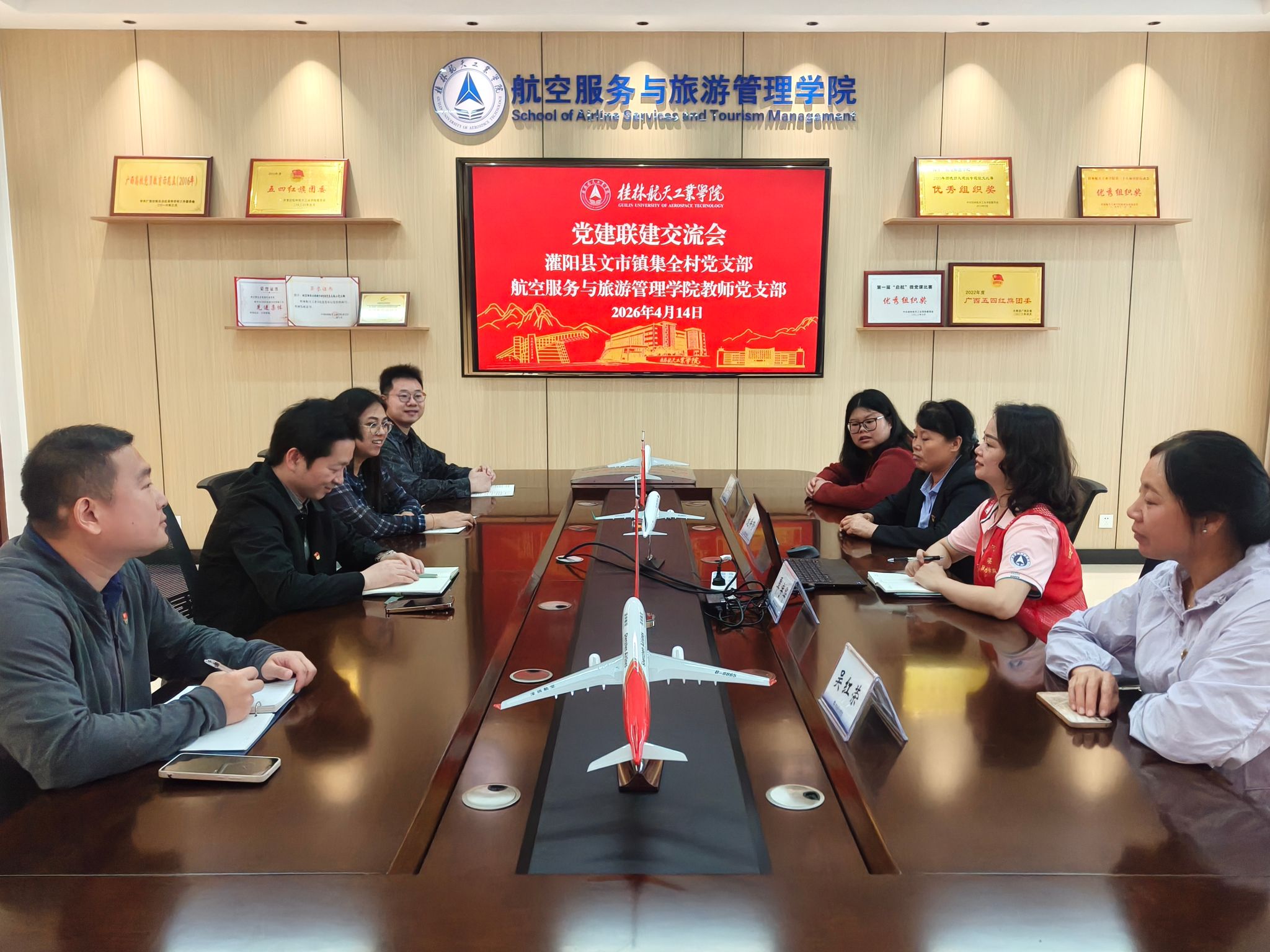 为深化党建引领,推动高校资源与乡村振兴有效衔接,4月14日,航空服务与旅游管理学院教师党支部与灌阳县文市镇集全村党支部联合举办党建联建交流会。集全村党支部书记带队一行到访,双方围绕“‘党建+文旅融合’...