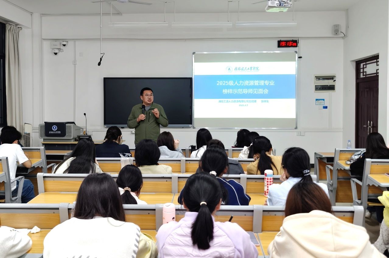 4月7日晚,管理学院在探天楼A416教室举行榜样示范导师见面会。特邀我校2000级校友、潍坊工源人力资源有限公司总经理张祥生,为2025级人力资源管理专业学生带来了一场内容丰富、指导性强的经验分享会。见面会由管...