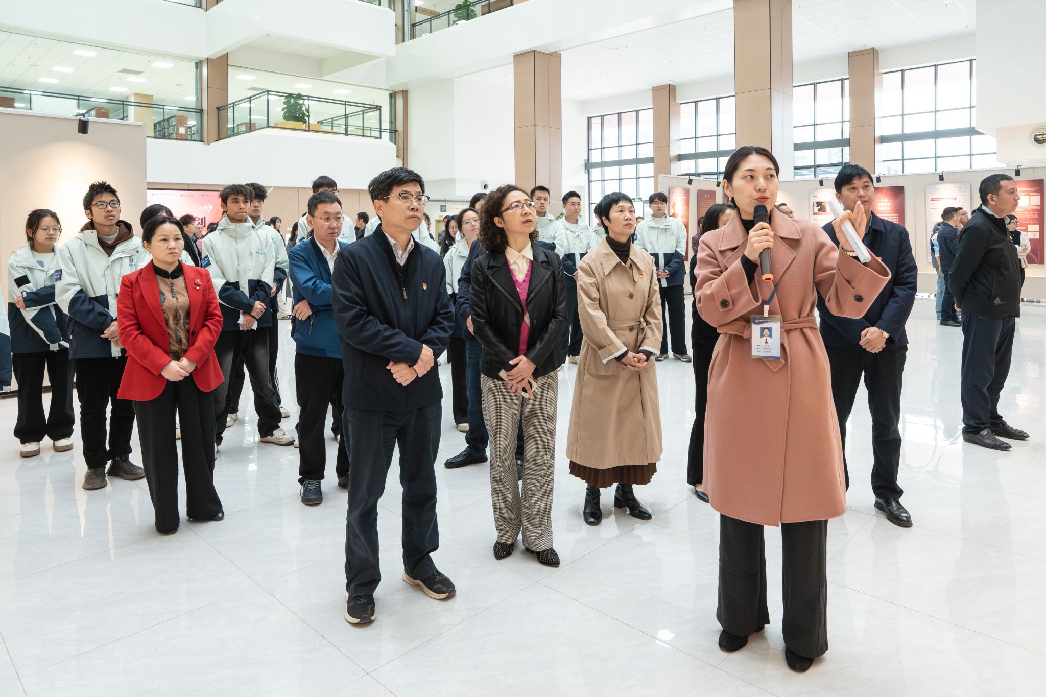 启动仪式后,与会嘉宾与师生代表在主题展板前合影留念,随后在讲解员引导下有序参观,近距离感受钱学森先生“党有所呼、我有所应,国有所需、我有所为”的崇高风范。2024级“钱班”学子刘佳朋在观展后表示:“我们要从钱学森先生的事迹中汲取奋进力量,把爱国情怀转化为学习工作、建功立业的实际行动,以立足空天、服务地方、面向东盟的担当,回应‘请党放心,强国有我’的时代使命。”