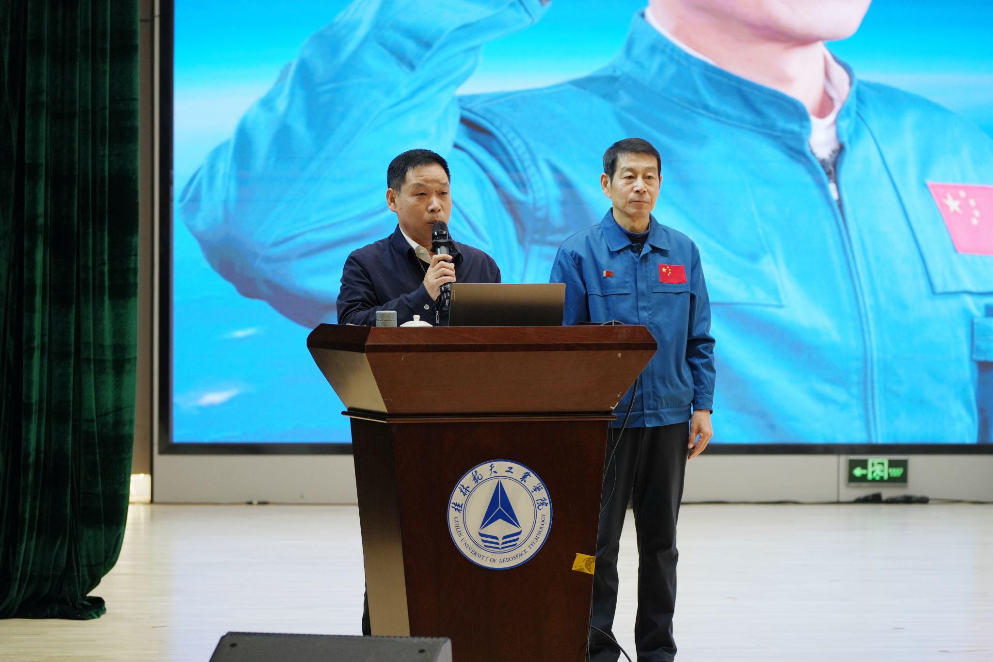 2025年12月18日,桂林航天工业学院迎来第十一个“航天日”。为深入贯彻落实党的二十届四中全会精神和国家“十五五”规划纲要关于航空航天事业发展的部署要求,大力弘扬航天精神,厚植家国情怀,“桂航大讲坛”特邀我国首批航天员赵传东同志,在问天楼学术报告厅作《星空浩瀚,探索无限》专题报告。校党委书记韩峻峰出席,校党委副书记孙山林主持报告会,桂航师生代表、桂林市三所中小学代表800余人齐聚现场聆听报告。