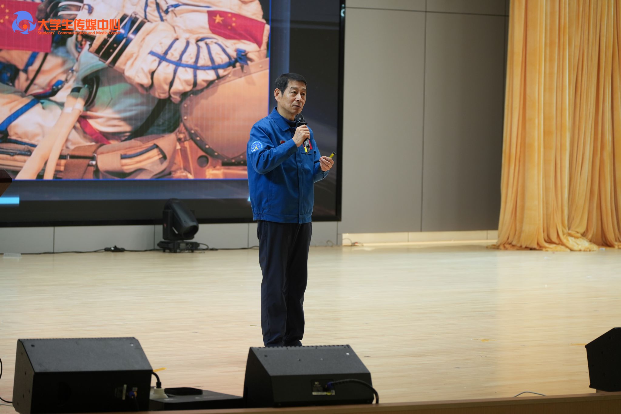 报告会上,赵传东航天员以“你是否曾仰望星空,对宇宙充满好奇”为引,结合自身丰富的航天从业经历,展开了一场内容翔实、感人至深的分享。作为原空军一级飞行员、中国载人航天工程航天员系统前副总设计师,他曾参与神舟五号至神舟十号飞行任务相关训练工作,深耕航天员训练、科研管理及航天科普事业多年。报告中,他通过一个个真实鲜活的奋斗故事、一幅幅珍贵的工作画面,生动再现了中国首批航天员不畏艰辛、勇攀高峰的拼搏历程,详细介绍了航天员严苛的地面训练、奇妙的太空工作生活等细节,让在场师生身临其境感受航天事业的艰辛与光荣。