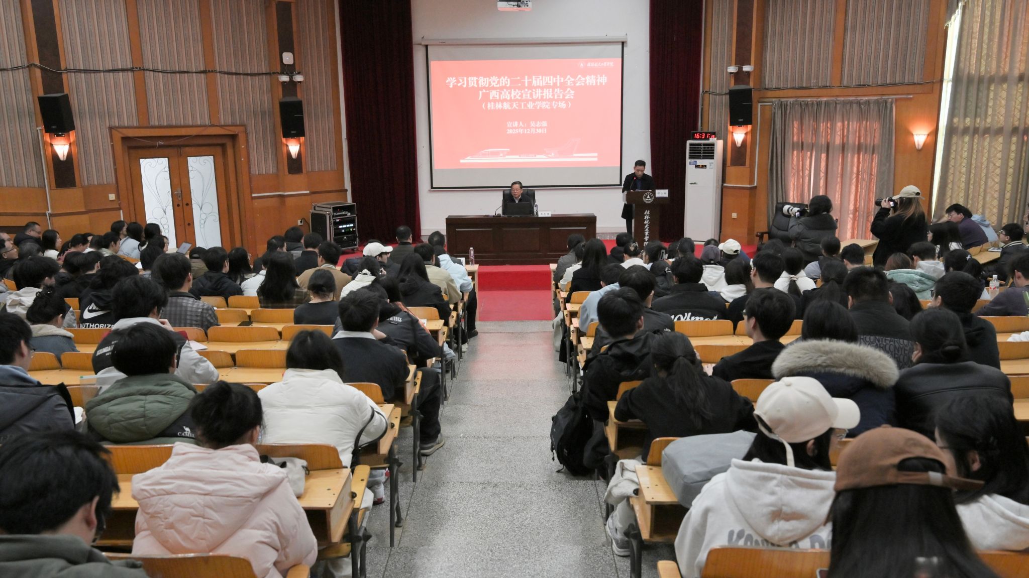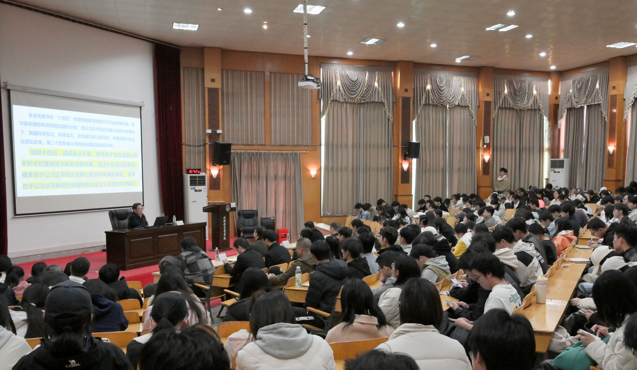 为深入学习贯彻党的二十届四中全会精神,学校在致远楼108会议室举办专题宣讲会,特邀广西壮族自治区党委讲师团特聘教授、桂林理工大学原党委副书记吴志强教授作题为“深入学习党的二十届四中全会精神,办好人民满意的教育,培养德智体美劳全面发展的社会主义建设者和接班人”的辅导报告。学校师生代表350余人参加会议,会议由学校党委副书记孙山林主持。