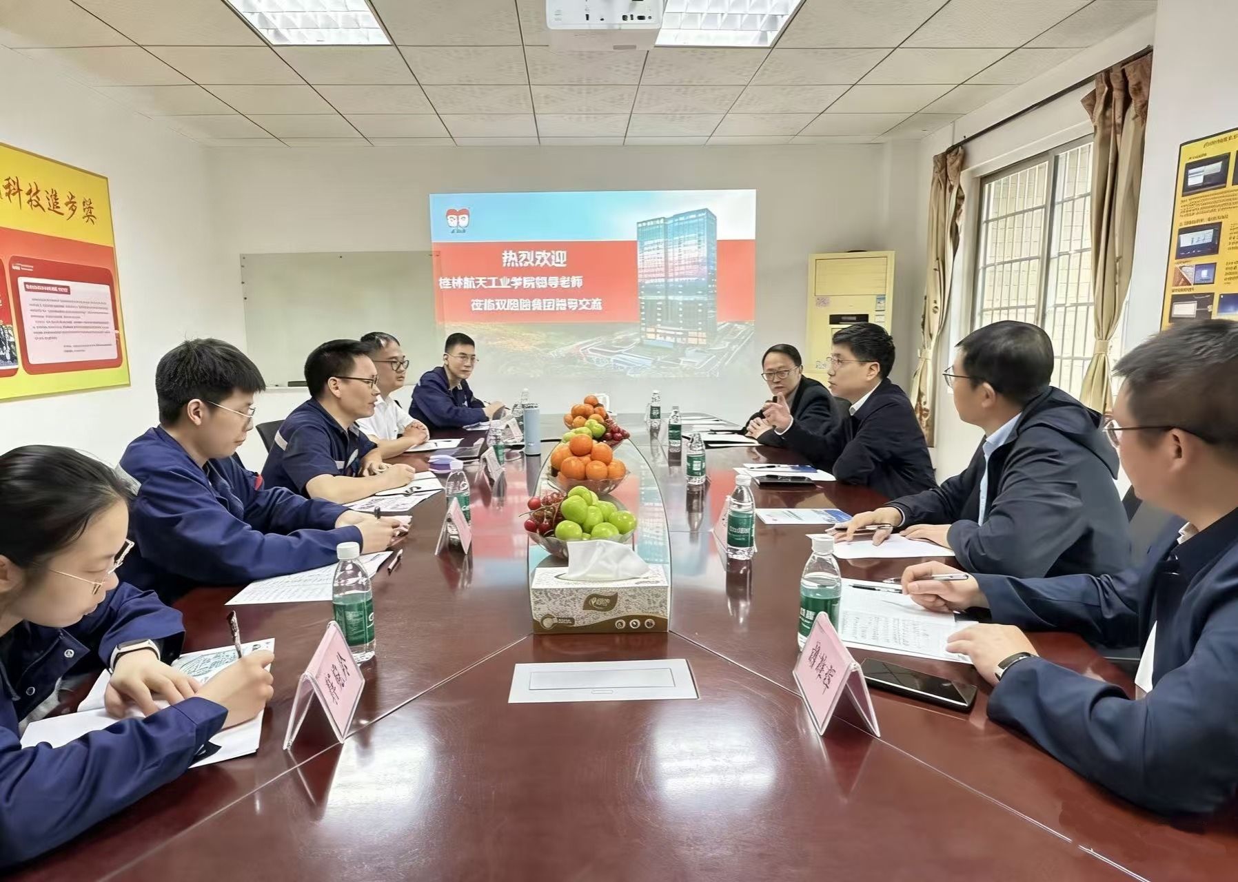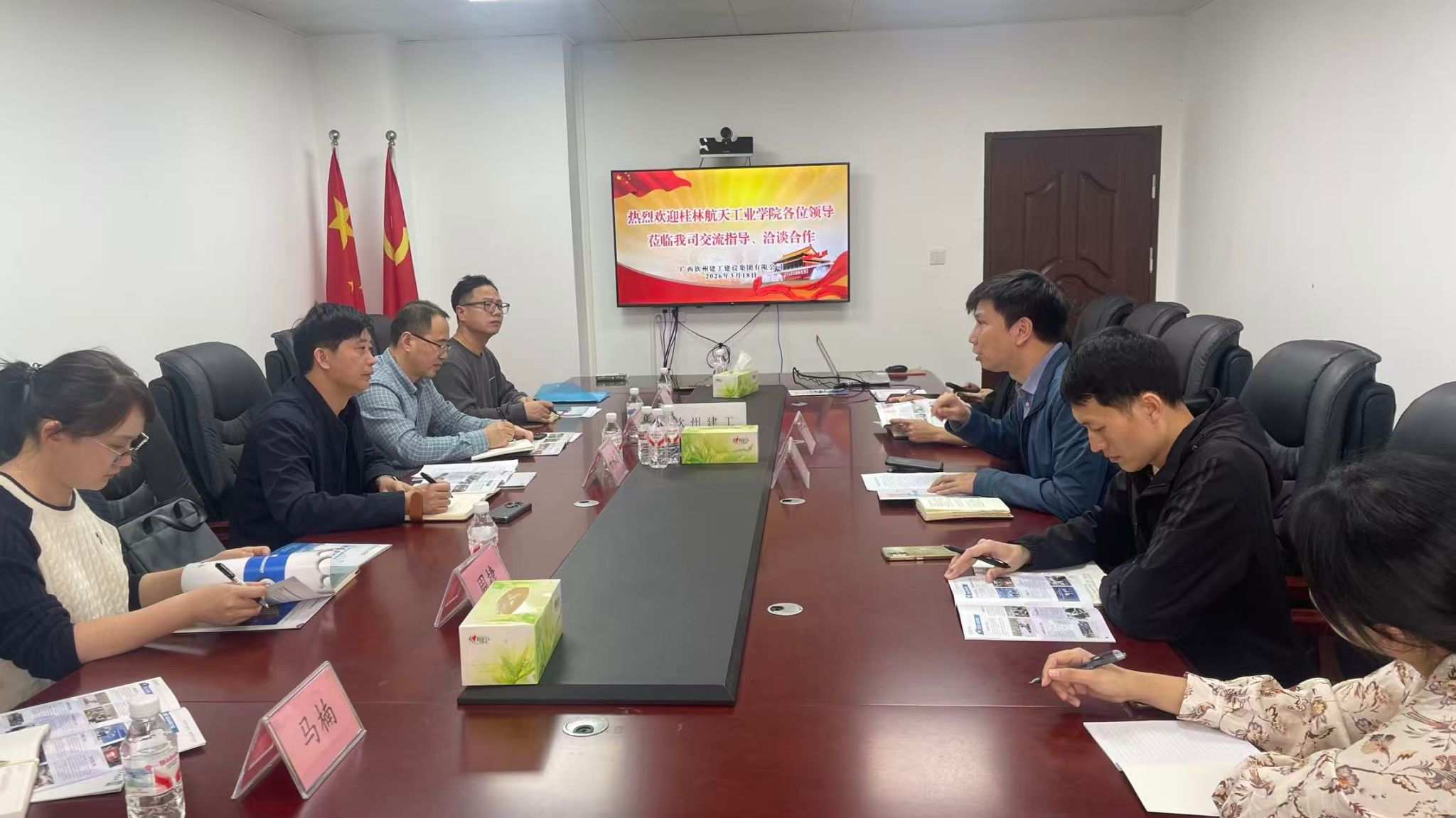 杨永昌在广西钦州建工建设集团有限公司、广西埃索凯新材料科技有限公司等的座谈会上重点介绍了学校航天航空人才培养特色,积极邀请企业参加学校春季双选会。
