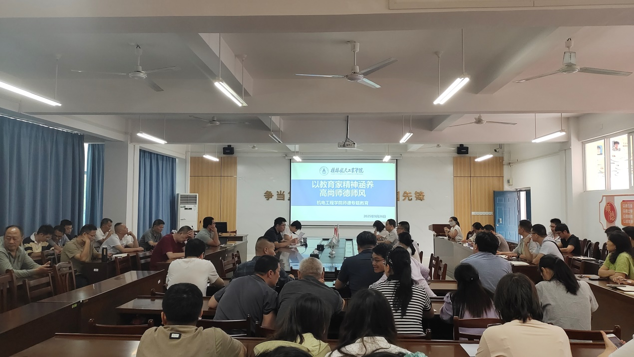 为深入学习贯彻习近平总书记关于教育的重要论述,全面落实新时代教师队伍建设要求,9月26日,机电工程学院在巡天楼229会议室举办“大力弘扬教育家精神,筑牢立德树人根基”师德专题教育活动,学院全体教职工共同参加。