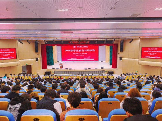 为营造“安全、文明、温馨”的校园氛围,助力2025级新生宿舍长快速适应角色、提升管理能力,10月26日上午,我校2025级新生宿舍长培训会在问天楼学术报告厅举行。学生工作部(处)相关负责人、学生公寓科与学生心理科老师、2025级新生宿舍长、“一站式”社区学生干部、楼长等700余人参会。