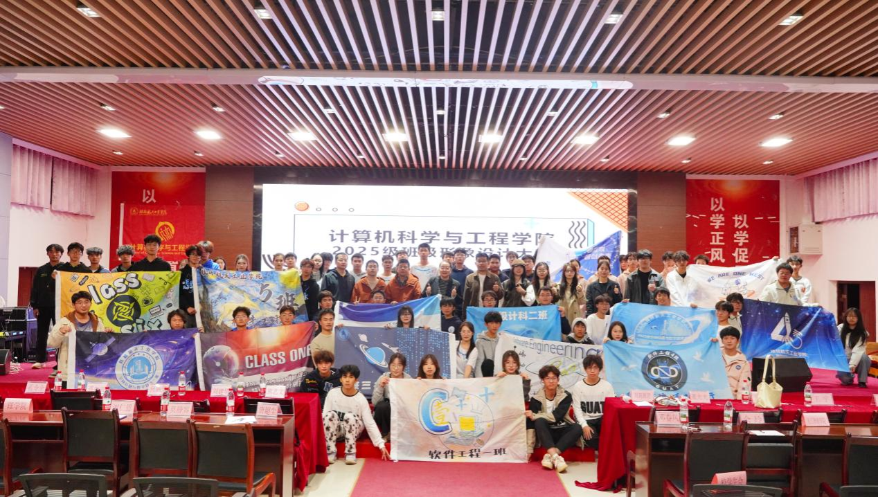 为激发学生创新活力,深化班级文化建设,增强集体凝聚力,近日,计算机科学与工程学院在北校区招聘大厅成功举办2025级“你我共执笔 齐绘新风貌”班级形象设计大赛。本次比赛自筹备启动以来历时一个多月,各班级精心策划、反复打磨,充分展现了高涨的参与热情与团队协作精神。学院学工负责人、团委书记、辅导员及班主任代表出席活动,2025级全体学生踊跃参与。