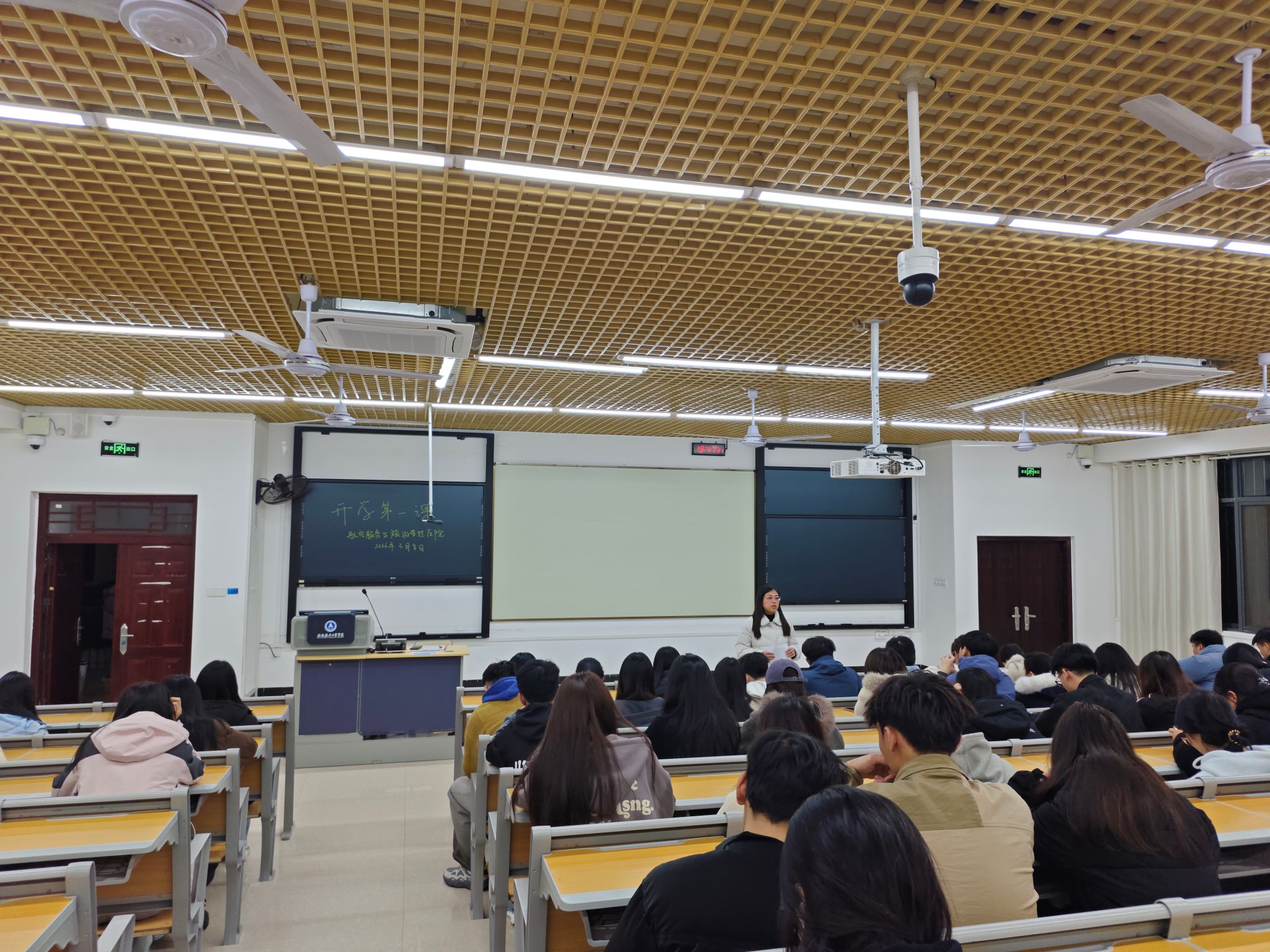 学院分管学生工作负责人与辅导员走进早自习现场,察看学生学习状态,鼓励学生珍惜时光、主动学习,同时强调优秀学风建设的重要性。各班级开展“开学第一课”主题班会,辅导员融合思想政治教育、心理调适、纪律要求等方面,通过各种形式排解学生压力,增强专业认同和班级凝聚力。会后,辅导员走访学生宿舍,开展安全排查,关注用电、消防和环境卫生,结合春季传染病防控,引导学生宿舍保持整洁,确保宿舍安全温馨。