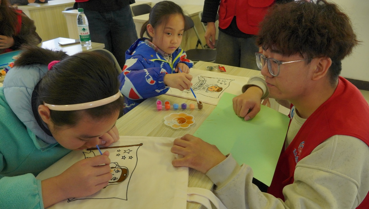 随后的“巧手学雷锋,童心向文明”手工制作环节将活动推向高潮。在志愿者的协助下,孩子们手持画笔,在印有雷锋元素的布袋上尽情描绘心中的美好愿景。有的孩子精心勾勒雷锋形象,立志做助人的“大力士”;有的孩子绘满爱心图案,愿做照亮他人的“小太阳”。亲子携手、师生同行,色彩流淌间,雷锋精神在孩子们心中落地生根。活动最后,孩子们展示着充满奇思妙想的作品,脸上洋溢着满足与自豪的笑容。
