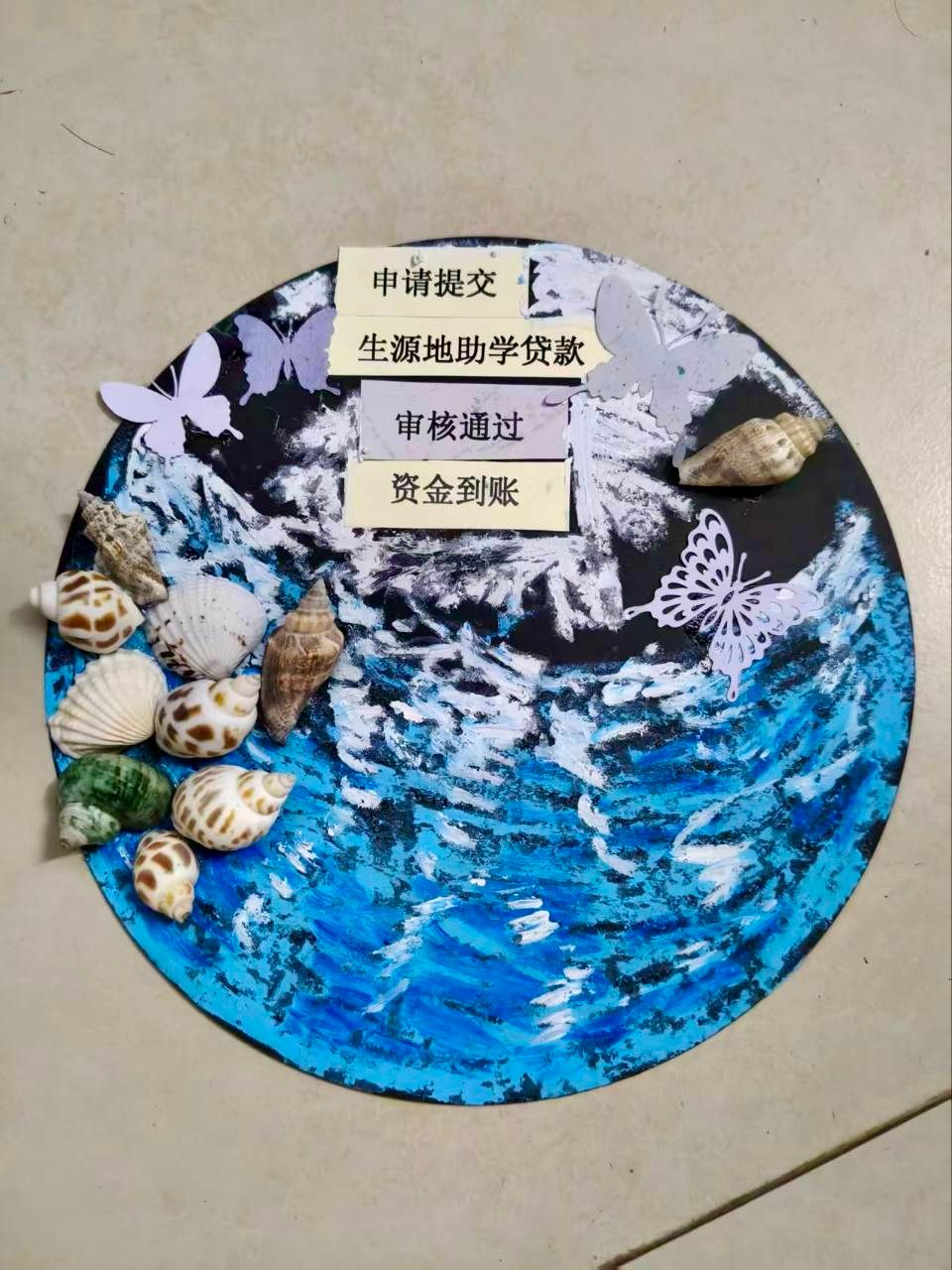 培训结束后,“趣玩学资助”欢乐体验营活动正式拉开帷幕,趣味资助答题围绕奖、助、勤、贷等核心政策,让学生在答题闯关过程中,轻松掌握资助金额、申请流程等实用知识,现场氛围热烈有序。拼贴画创作则为学生提供了卡纸、画笔、干花、词条等物料,鼓励学生将资助政策关键词融入创意创作,亲手制作资助拼贴画。活动中,学生们发挥奇思妙想,将“国家助学金”“勤工助学”等关键词与创意设计结合,创作了“梦想启航”“感恩之心”“未来可期”等众多新颖有趣、主题鲜明的作品,在动手实践中深化了对资助政策的理解。一幅幅充满创意和温情的拼贴画,不仅展现了同学们的艺术才华,更传递了大家对资助政策的深刻理解和感恩之情。
