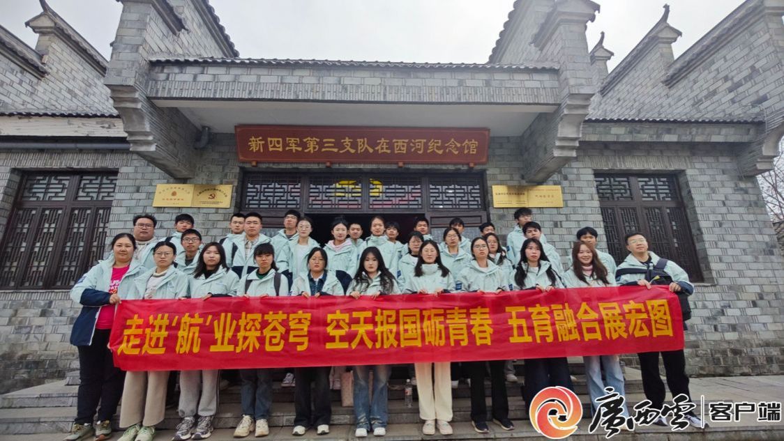 近日,桂林航天工业学院“钱学森班”师生走进安徽省芜湖市湾沚区航空新城,开展“走进‘航’业探苍穹 空天报国励青春”主题实践活动。通过探访航空航天企业、参与航空马拉松赛事和沉浸式红色教育、探究产业融合促乡村振兴等主题活动,学子们在实践中感悟空天报国使命,全方位锻造综合素质,为航天强国、教育强国、科技强国事业积蓄青春力量。