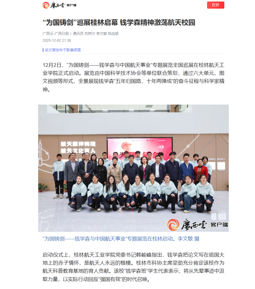 【广西日报-广西云】“为国铸剑”巡展桂林启幕 钱学森精神激荡航天校园
