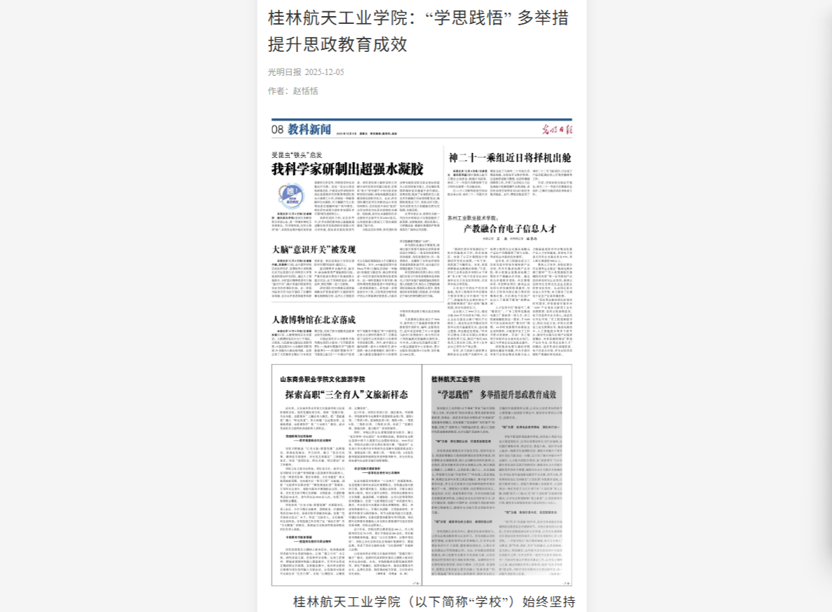 桂林航天工业学院(以下简称“学校”)始终坚持“育人为本、学以致用”的办学理念,聚焦思政教育创新改革,探索出一条具有学校办学特色的“学思践悟”思政教育新模式,有效破解了思政教育“知行脱节”的难题,实现了“思辨育人”的跨越式转变,着力打造新时代思政教育新格局,全方位提升思政育人成效。
