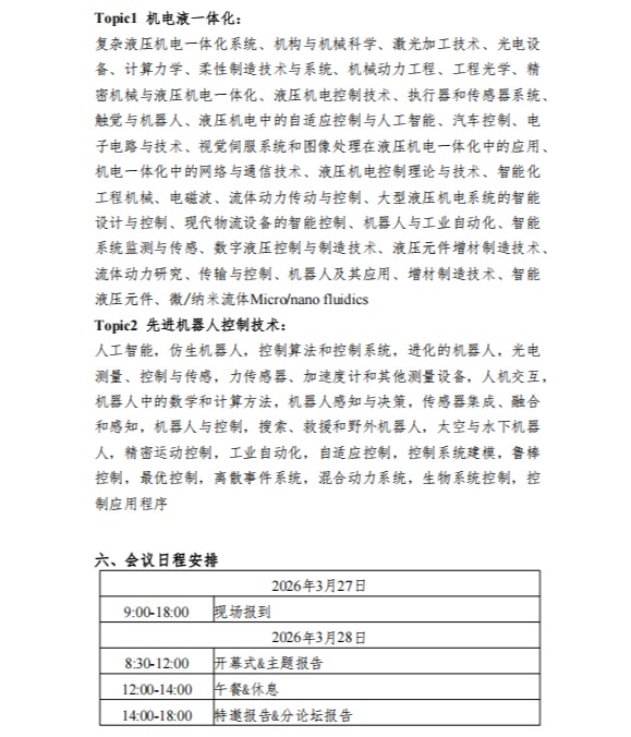 本届会议聚焦“机电液一体化”与“先进机器人控制技术”两大核心领域,深度围绕行业前沿研究成果、工程实践难题与未来发展方向展开。我们将诚挚邀请海内外在该领域深耕多年、成果卓著的顶尖专家学者,带来高水准的专题报告,分享从技术研发到产业落地的宝贵经验。