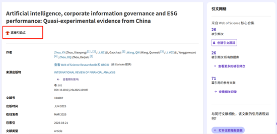 近日,我校数字碳中和创新团队周小勇教授于2025年发表的2篇SCI/SSCI论文同时入选Clarivate Analytics(科睿唯安)ESI高被引论文(全球前1%),标志着我校在该学科领域的成果具有一定国际学术影响力,引起了国际同行广泛关注,对于提升我校国际声誉将起到促进作用,对扩大我校学科影响力具有重要意义。