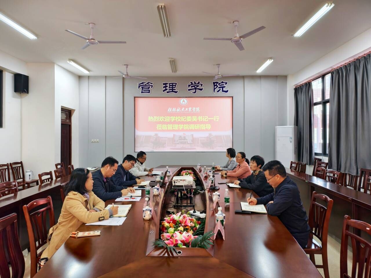 11月14日上午,学校党委副书记、纪委书记吴江萍率有关部门负责同志到管理学院调研指导,了解“清廉桂航”建设和硕士学位点培育建设等情况。管理学院班子成员参加了调研座谈会。