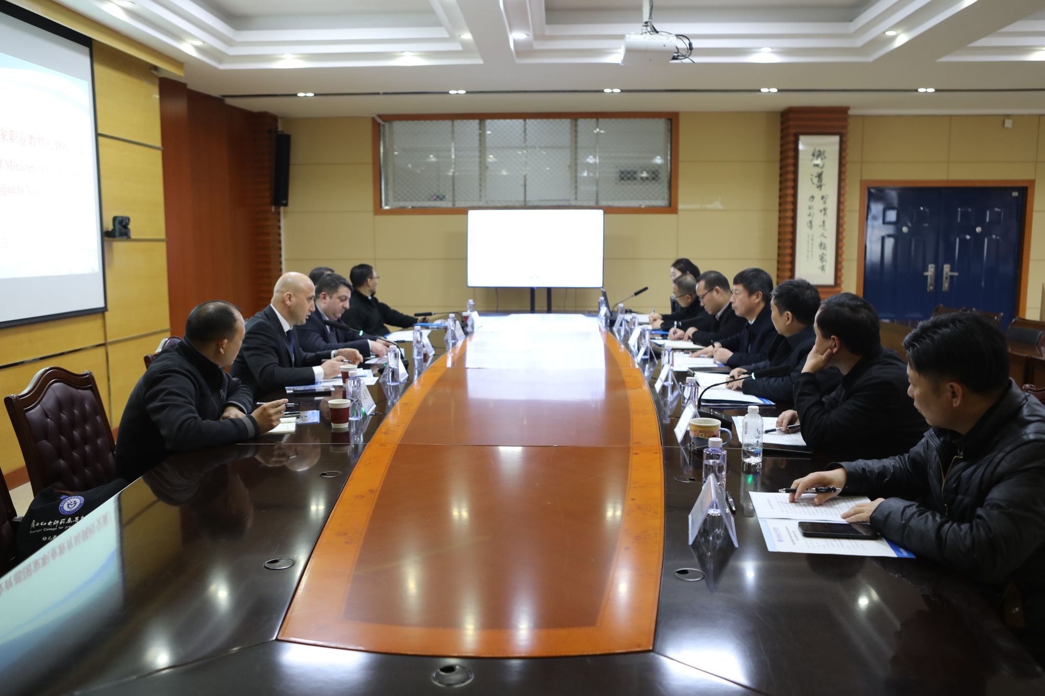 武加尔·马马多夫司长对我校的热情接待和细致分享表示衷心感谢,并介绍了阿塞拜疆职业教育体系建设现状及发展规划。他表示,中国职业教育的先进理念和产教融合经验极具借鉴意义,尤其对我校实训中心建设和应用型人才培养体系与模式高度认可,希望能推动双方在技能人才联合培养、师生互派、课程共建等领域开展深度合作。