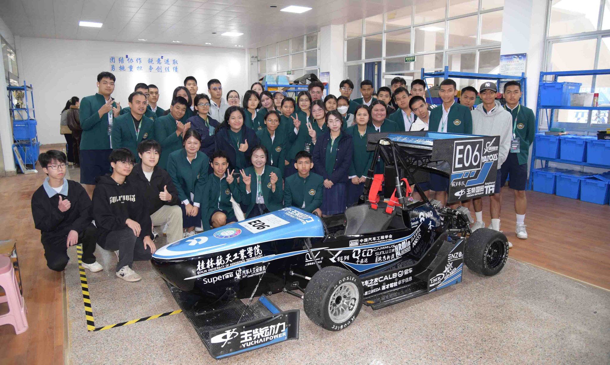当天,研学团师生还参观了航空航天工程实训教学中心、广西特种工程装备与控制重点实验室以及汽车工程学院实训教学中心,近距离了解了无人机系统工程、智能制造工程以及车辆工程等实验实训装备。同时,他们还体验了无人机飞行模拟操控,观看了无人机飞行表演。