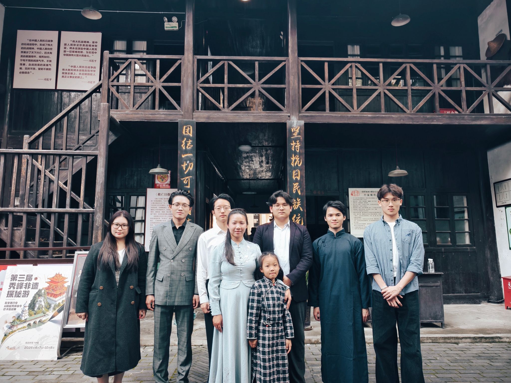 创作期间,师生多次前往救亡日报社旧址实地调研,触摸历史肌理,深挖人物故事,因地制宜设计舞台走位与肢体语言,让表演与历史场景深度融合。 排练过程中,同学们潜心钻研台词韵律,揣摩人物心理,反复打磨语气、节奏与情感张力,把对历史的敬畏融入每一句朗诵、每一个动作。为真实还原革命先辈精神风貌,大家主动查阅史料、观看影像资料,将专业所学的语言表达、舞台表现与红色文化传承相结合,以朗诵为骨、以情景为魂,让历史人物从文字中“走出来”,让红色精神在新时代青年的演绎中鲜活可感。 演出在救亡日报社旧址小楼内精彩呈现,历史建筑与红色剧目相得益彰,实现人、情、景高度统一。师生们真挚饱满的表演、铿锵有力的台词、富有张力的舞台呈现,将文化抗战的热血与坚守展现得淋漓尽致。当张曙用生命守护乐谱、先辈们齐声呐喊“人在,阵地在”时,现场观众无不动容,掌声经久不息。